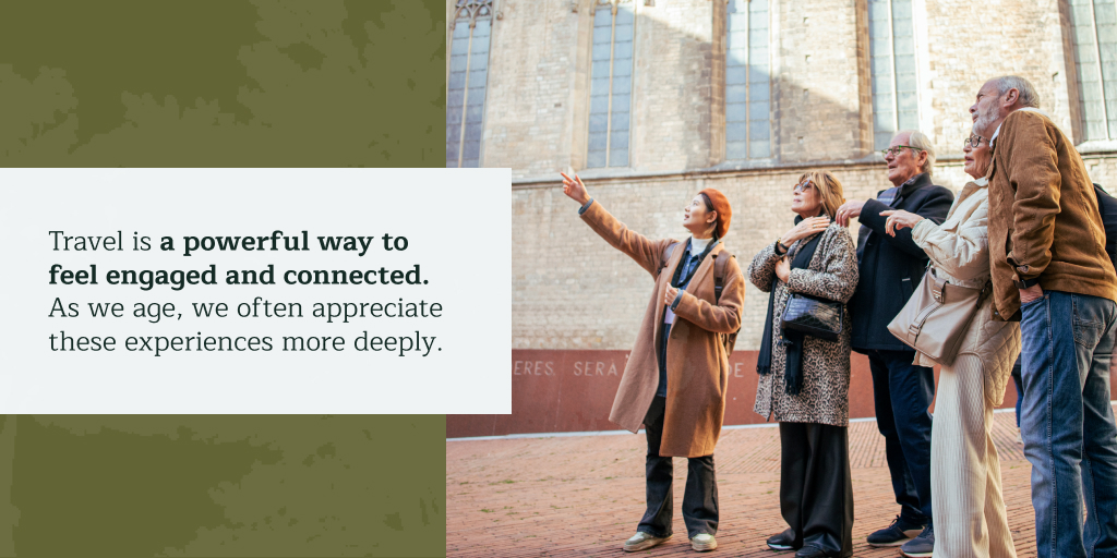 Travel is a powerful way to feel engaged and connected. As we age, we often appreciate these experiences more deeply.